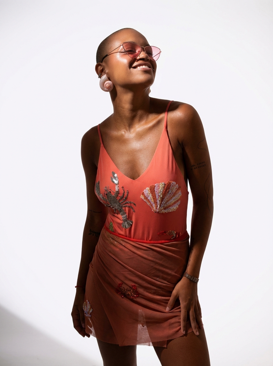 O body al mare é todo bordado a mao com vidrilhos coloridos. Divertido e elegante para arrasar no carnaval!