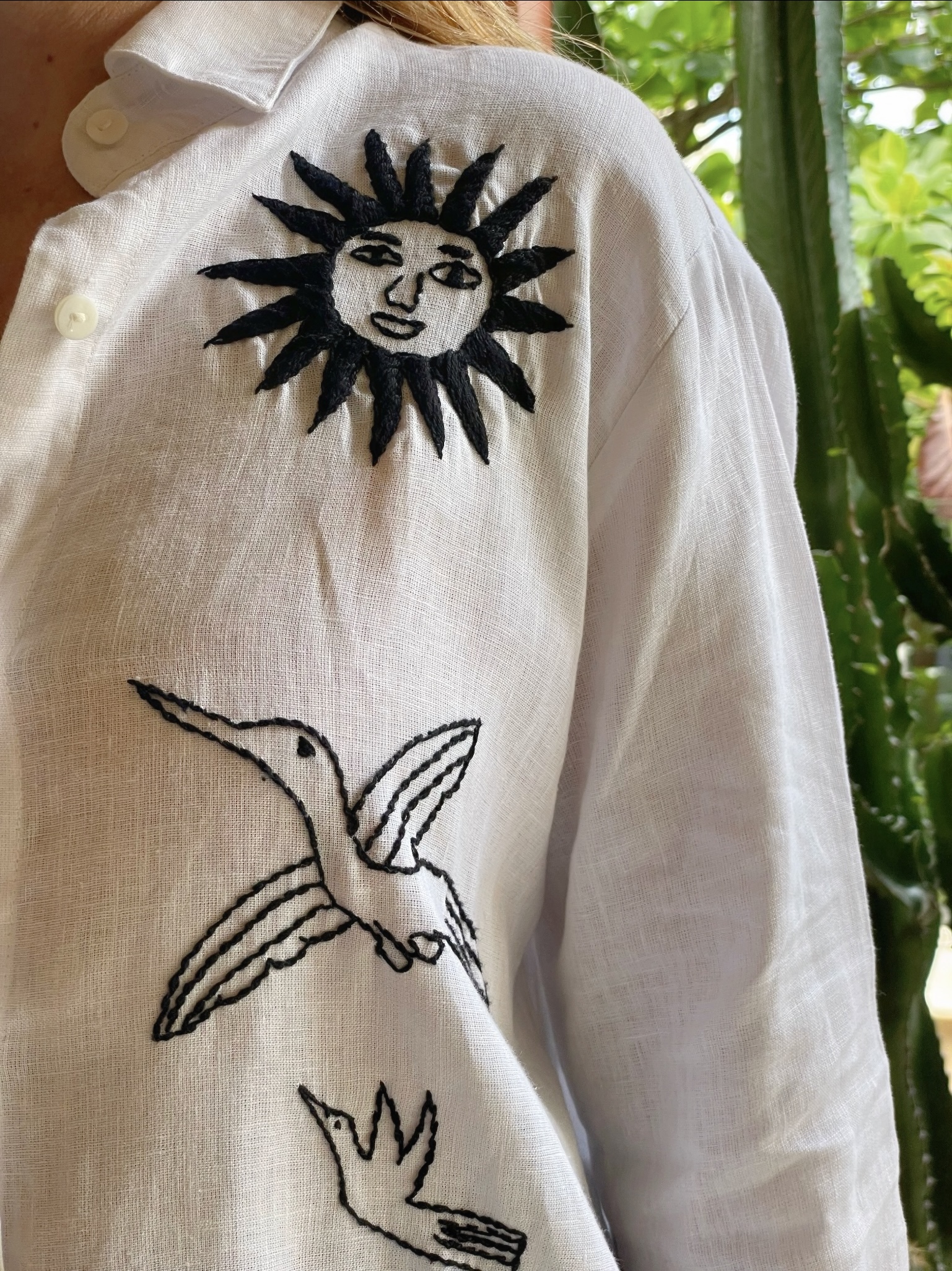 Camisa 100% linho, bordada e pintada à mão com elementos que lembram nosso lindo sertão.