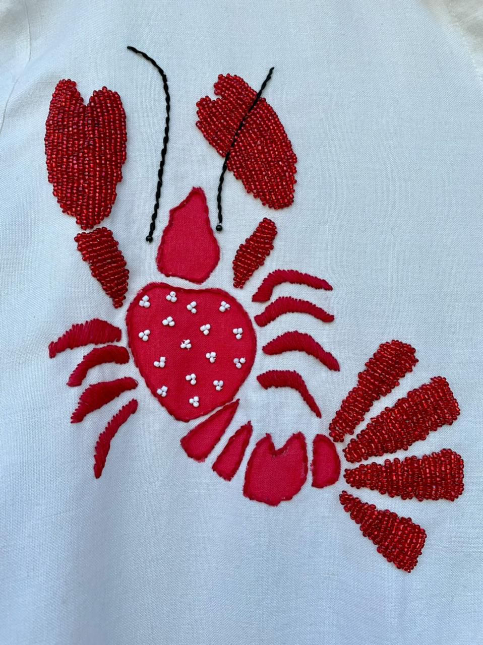 Chemise 100% linho com uma deslumbrante lagosta bordada e pintada à mão em vermelho. Com uma modelagem impecável, esta peça combina arte e sofisticação, trazendo um toque vibrante e exclusivo ao seu guarda-roupa.